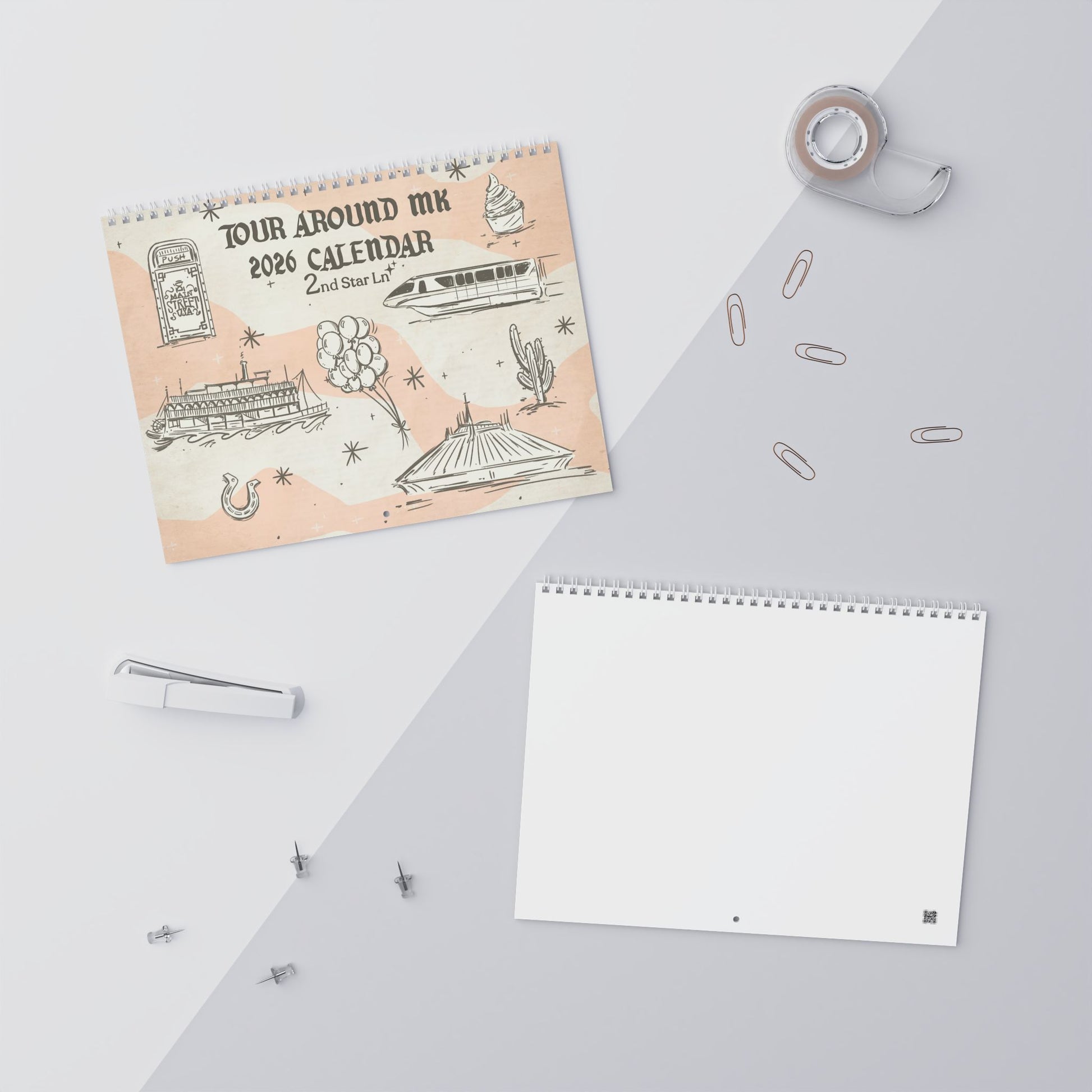 Each Tour Around MK 2026 12-Month Calendar is printed in full color on matte cardstock paper.